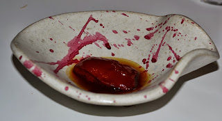 Como no me gusta la ostra pedí que me la cambiaran y me trajeron la bruma, un plato del menú de clásicos muy vistoso pero que gustativamente no mata, quizás sea porque nos hemos vuelto muy exigentes dado el nivelazo de los anteriores, luego pensándolo bien me hubiese gustado más probar el cuba libre de foie gras, culpa mía por no pedirlo y dejar que me traigan lo que quieran pero lo dejo pendiente para probarlo la prox. vez que acuda o quizás en el poblet en valencia